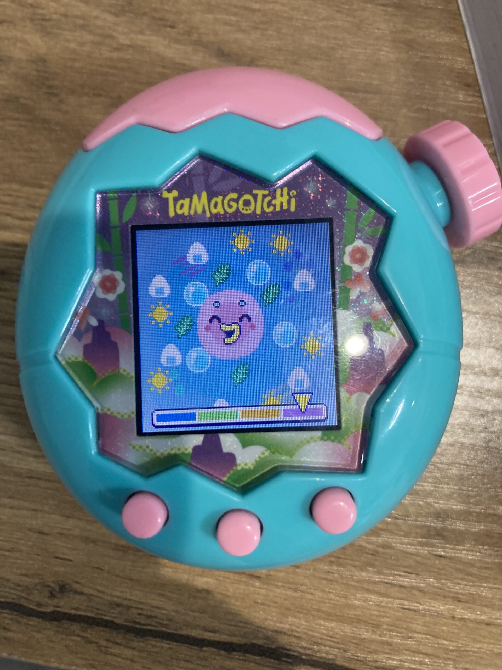 頭のまわりの大きなヒレやしっぽがチャームポイントのたまごっち。性格はメチャクチャ明るく陽気で、ノリもいいらしい♪