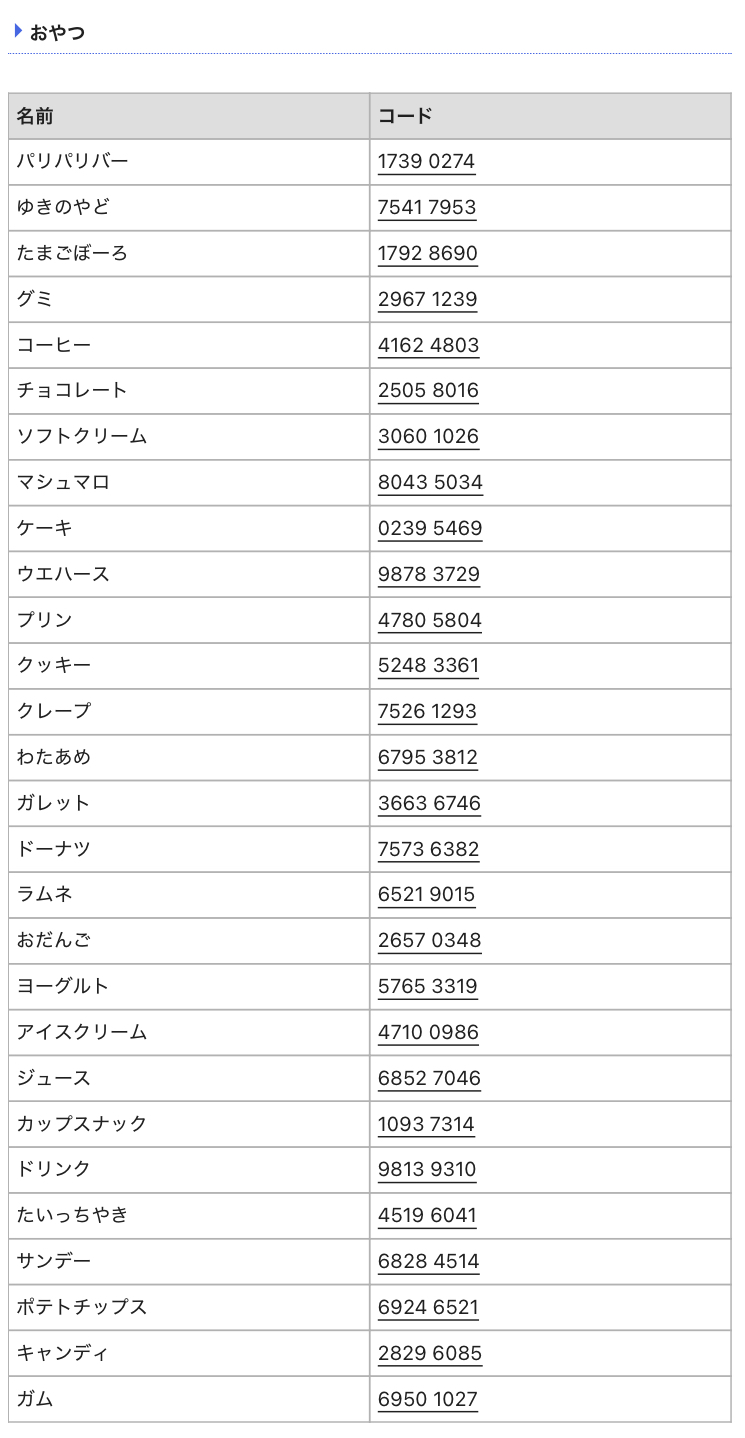 | ラムネ | 100 | 10 | ショップコード | なし |